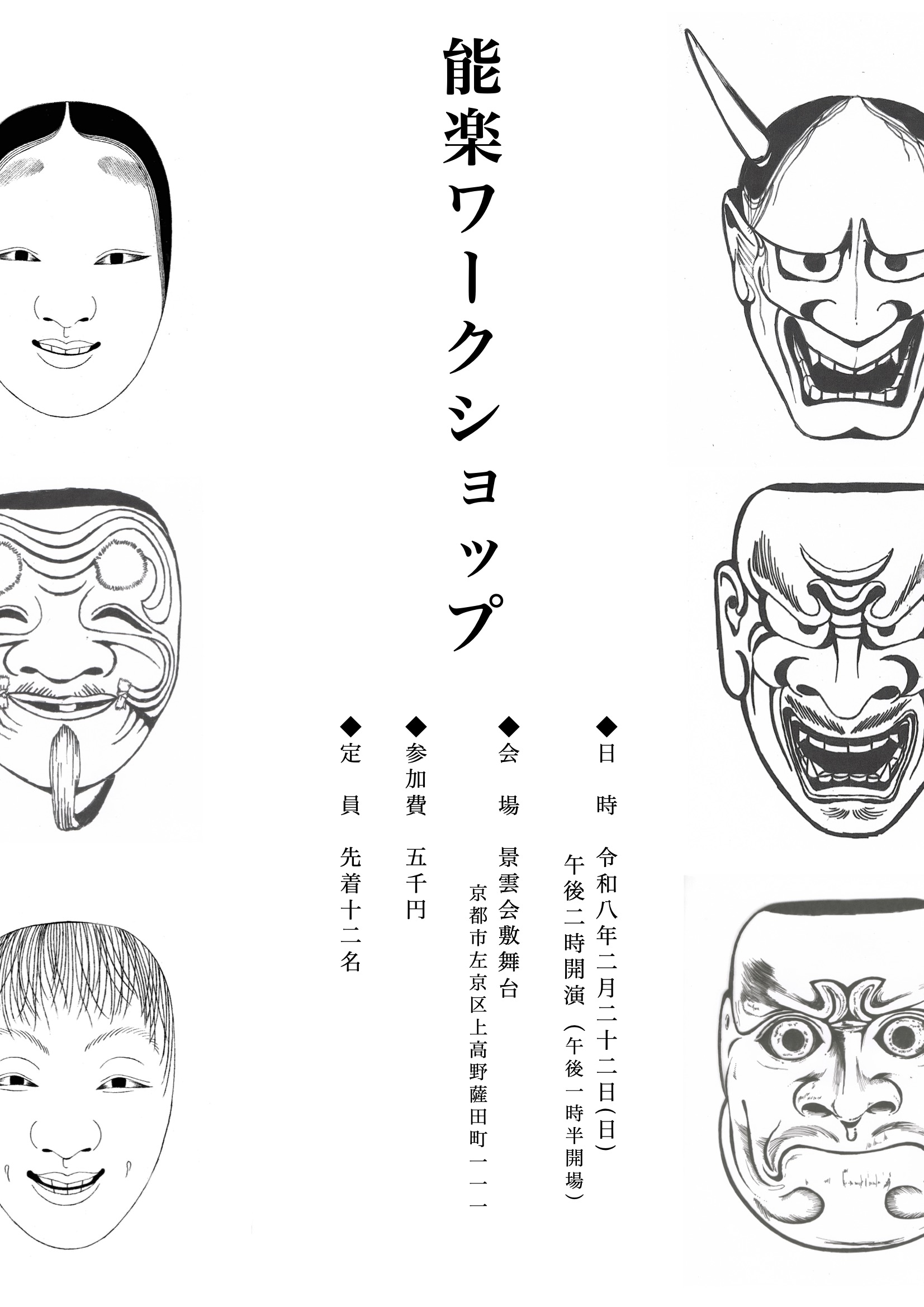 2月22日(日) 能楽ワークショップ開催 Noh Workshop Announcement