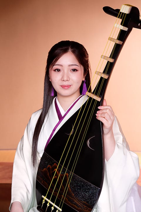 The episode of the “Fan Target" is a famous story that appears in Japanese textbooks and is also represented in various performing arts. Through my relationship with Seki Semimaru Shrine, which is dedicated to the poet and biwa performer Semimaru, I am pleased to have Ms. Kumada Kahori, a Tsuruta School biwa player, appear today. As the organizer of today’s program, I am very much looking forward to her performance.